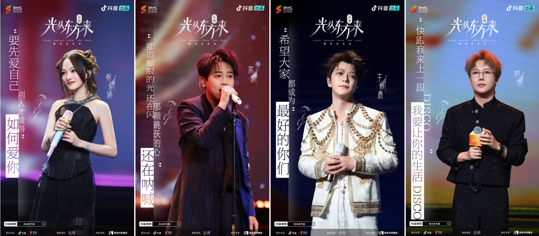 张韶涵的《淋雨一直走》唱出了直面生活的勇气,传递出“接纳不完美、勇敢前行”的信念,她穿透时光的嗓音,让观众在旋律中汲取直面未知的力量;王栎鑫再唱《最好的我们》,一开口梦回路星河,青春瞬间重启;刘维献唱《80后的DISCO》,抖音达人奶茶小肥仔、爱唱歌的小尹合唱《一点点》,他们用轻快的旋律诉说着生活中的小美好,点燃全场欢乐氛围,共同诠释“爱自己,快乐至上”的生活宣言,让观众在歌声中感受纯粹、简单的快乐;苏醒、赖美云分别带来《做我的星光》和《日界线》,歌词中的暖意随旋律沁入人心,既呼应了“光从东方来”的追光主题,也道出了追光新生的真谛 —— 我们皆是追光者,在前行的路上彼此温暖,成为照亮别人的光。