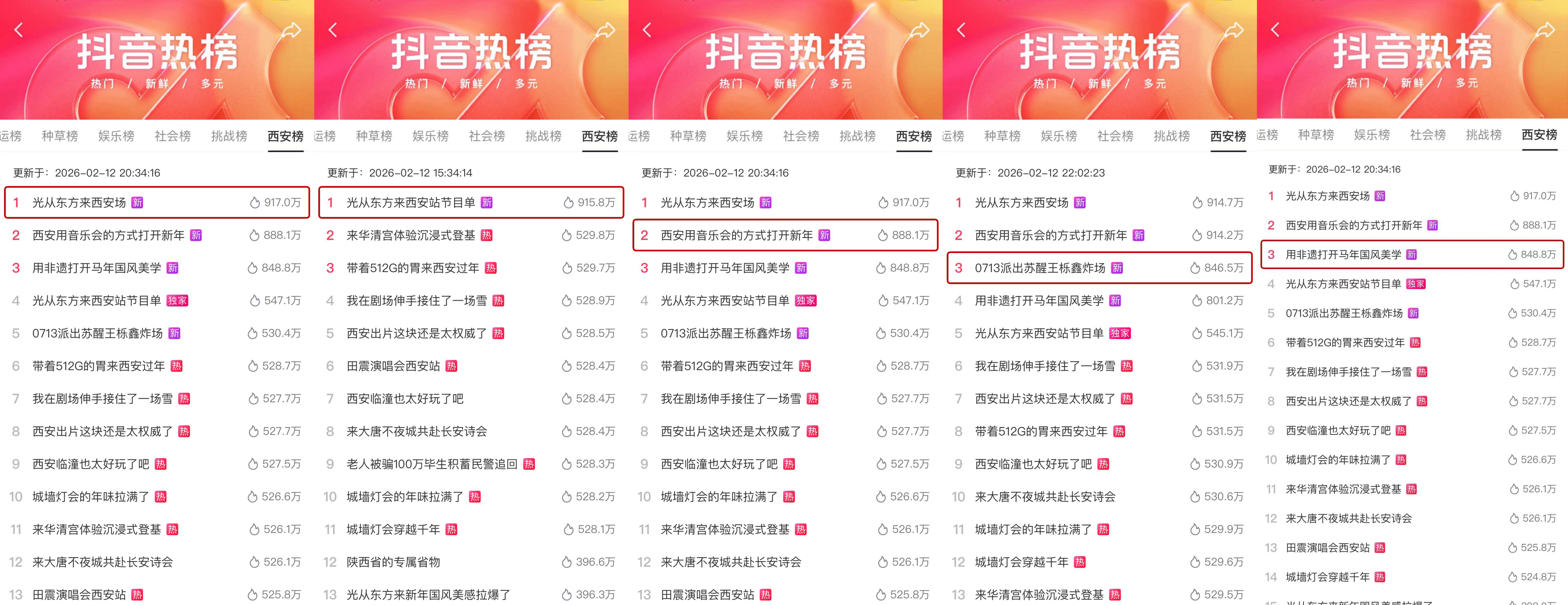 一场深入人心的文艺盛宴,总能在细节处戳中观众,既有人间烟火的温情,也有文化传承的新意。本次“光从东方来”城市音乐会西安场从预热阶段便自带热度,#王栎鑫跟着苏醒回西安了# 话题一经发布便引发网友热议,成为全网关注的焦点。作为西安人,苏醒带着好友王栎鑫回到家乡,二人同台合唱《快乐在哪里》,熟悉的旋律搭配默契的互动,将老友相聚的欢喜展现得淋漓尽致。舞台上,他们是配合无间的搭档,舞台下,是惺惺相惜的挚友。在关键词唱歌游戏中,苏醒更是暖心帮唱,与王栎鑫一起清唱了陆虎的《雪落下的声音》。这般自然又真挚的互动,让观众在歌声中感受到老友相伴的温暖,也让这场西安之约更具人情味,相关片段在多个社交平台刷屏,成为观众心中的名场面,带动#0713派出苏醒王栎鑫炸场 #苏醒王栎鑫合体演唱 等话题接连登上热门。仅在抖音站内,#光从东方来 累计话题观看量就已达到.04亿+ ,相关话题词不仅霸榜西安同城,成为备受欢迎的本地文化事件,更履登娱乐榜单,吸引广泛关注。