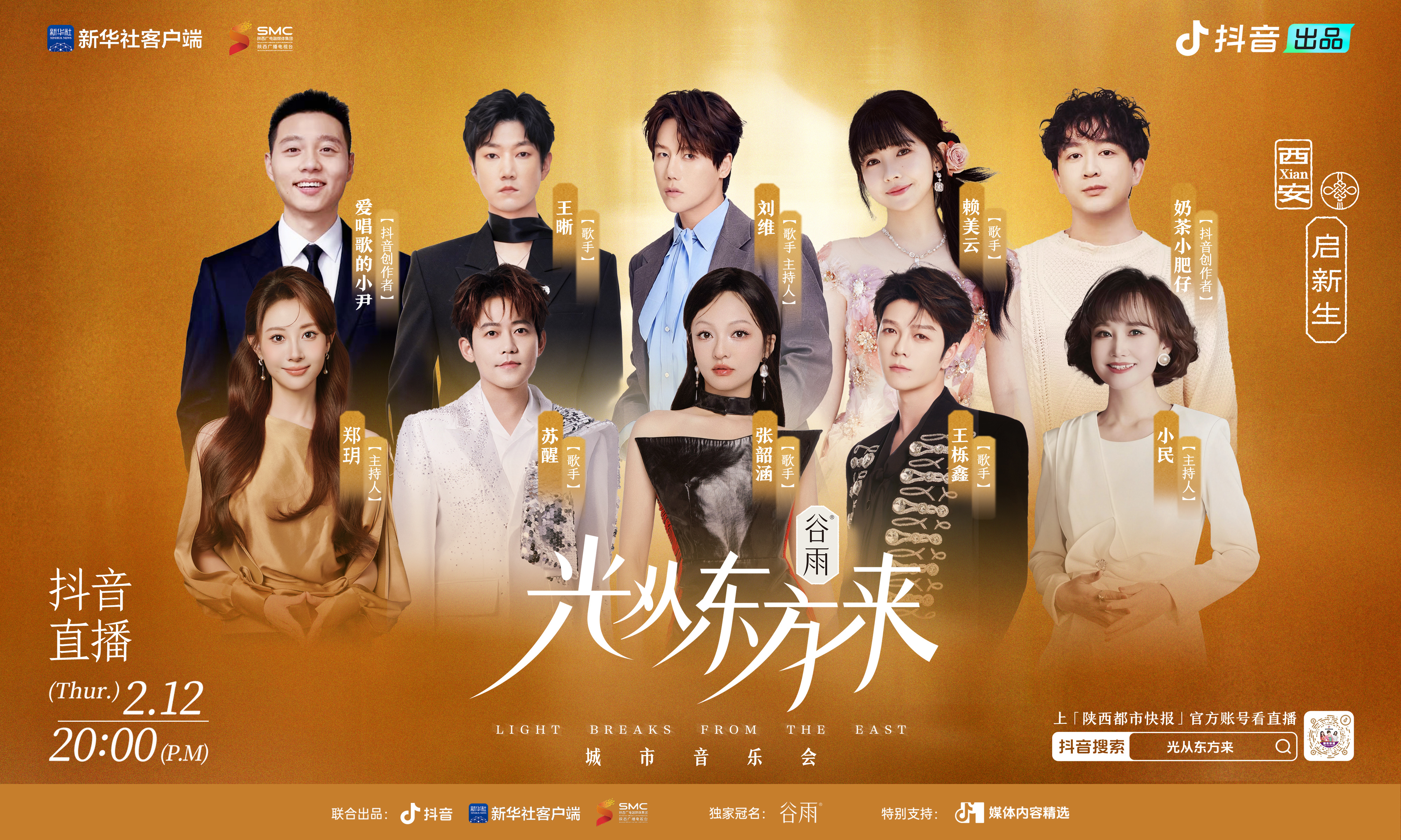 这场由谷雨独家冠名,抖音携手新华社客户端、陕西广播电视台发起的视听盛会,奉长安之礼,力邀张韶涵、苏醒、王栎鑫、刘维、王晰、赖美云及 @奶茶小肥仔、@爱唱歌的小尹等明星嘉宾、抖音达人倾情加盟,特邀非遗传承人陕西华州皮影民间艺术家薛宏权、薛静父女,以及陕西广播电视民族乐团、陕西歌舞剧院的表演者同台献艺,展现非遗美学。一众嘉宾以舞乐传情,带领全网观众在西安专属 BGM 中品味长安浪漫,于团圆暖意中共赴马年新程。音乐会上线后,迅速掀起全网热议,成为新春前夕兼具热度与口碑的文化佳作。
